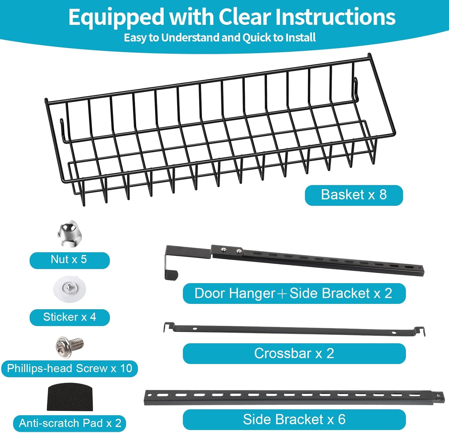 ElegantArray's 8‑Tier Over‑the‑Door Pantry Organizer unlocks instant vertical storage with adjustable metal baskets, ideal for spices, cans, snacks, cleaning supplies, and more in kitchens, laundry rooms, or bathrooms. Built from heavy‑duty iron and measuring 6.1" D x 16.34" W x 63.78" H, it installs quickly with a door‑mount design and no‑trace adhesive support for stability without drilling. Streamline clutter and make the most of unused door space with a clean, high‑capacity setup that's ready to use today