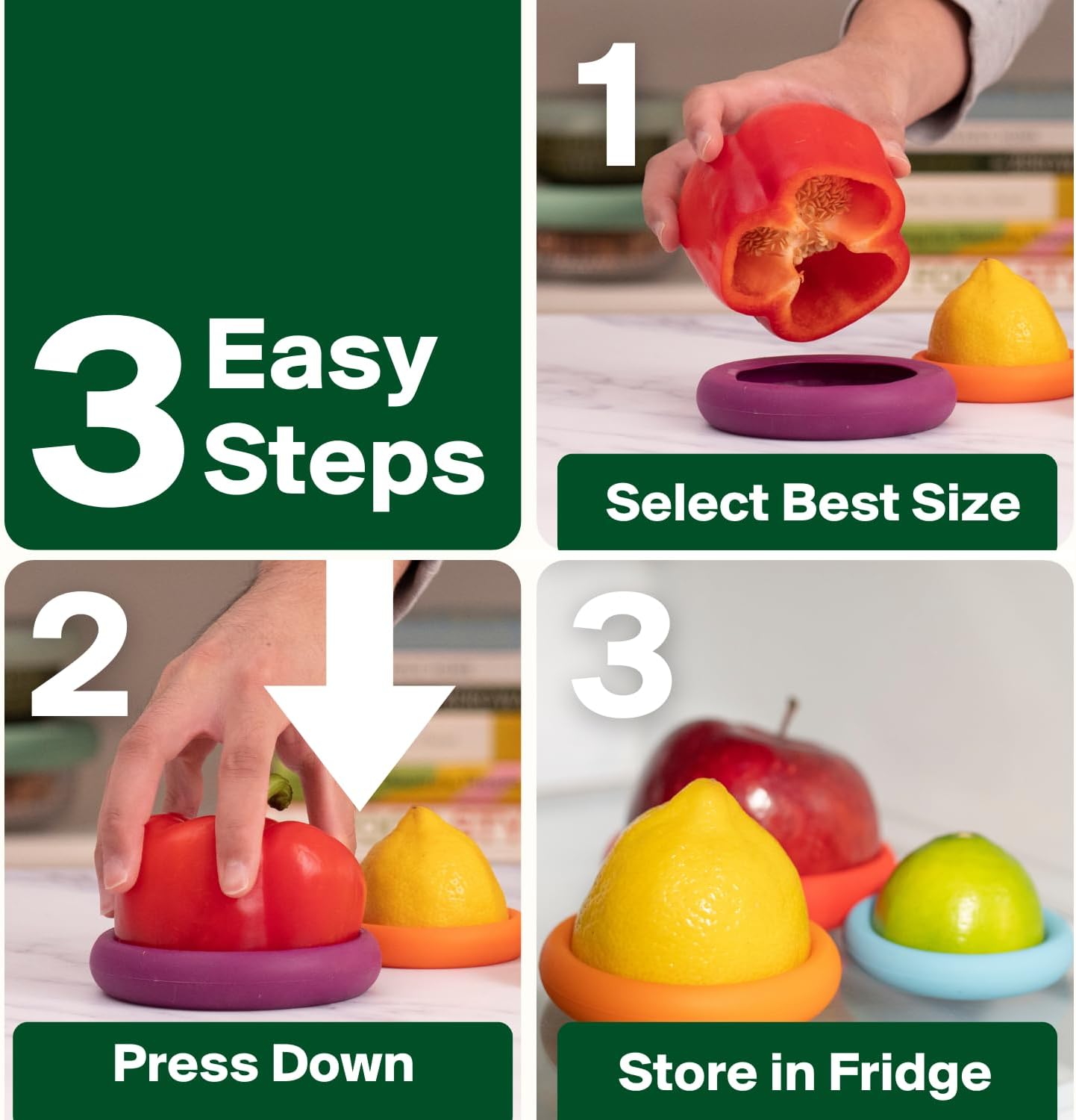 Keep cut produce fresher without plastic wrap using Food Huggers, a set of five reusable silicone covers that stretch to seal fruit and vegetable halves of various sizes for everyday kitchen use. The patented “hug” design grips smoothly around onions, lemons, cucumbers, and more, creating a quick seal that helps reduce oxidation and moisture loss in the fridge. Each sleeve is crafted from BPA‑free, food‑safe silicone, giving a flexible, odor‑resistant barrier that is easy to rinse or run through the dishwasher after meal prep. Beyond produce, the round profiles double as instant lids for open cans, jars, and small bowls, minimizing spills and keeping aromas contained until the next use. The five sizes nest for compact storage in drawers and are color‑coded to help you match the right fit at a glance during busy cooking sessions. Unlike single‑use films and bags, these durable covers are built for repeated cycles, helping cut down on waste and ongoing replacement costs while keeping leftovers tidy. Their smooth edges are gentle on delicate cut surfaces, and the stretch‑fit makes them a simple, one‑handed solution when juggling multiple tasks. Choose Food Huggers to simplify storage, prolong freshness, and upgrade sustainability with a versatile set that’s ready for daily prep and cleanup.